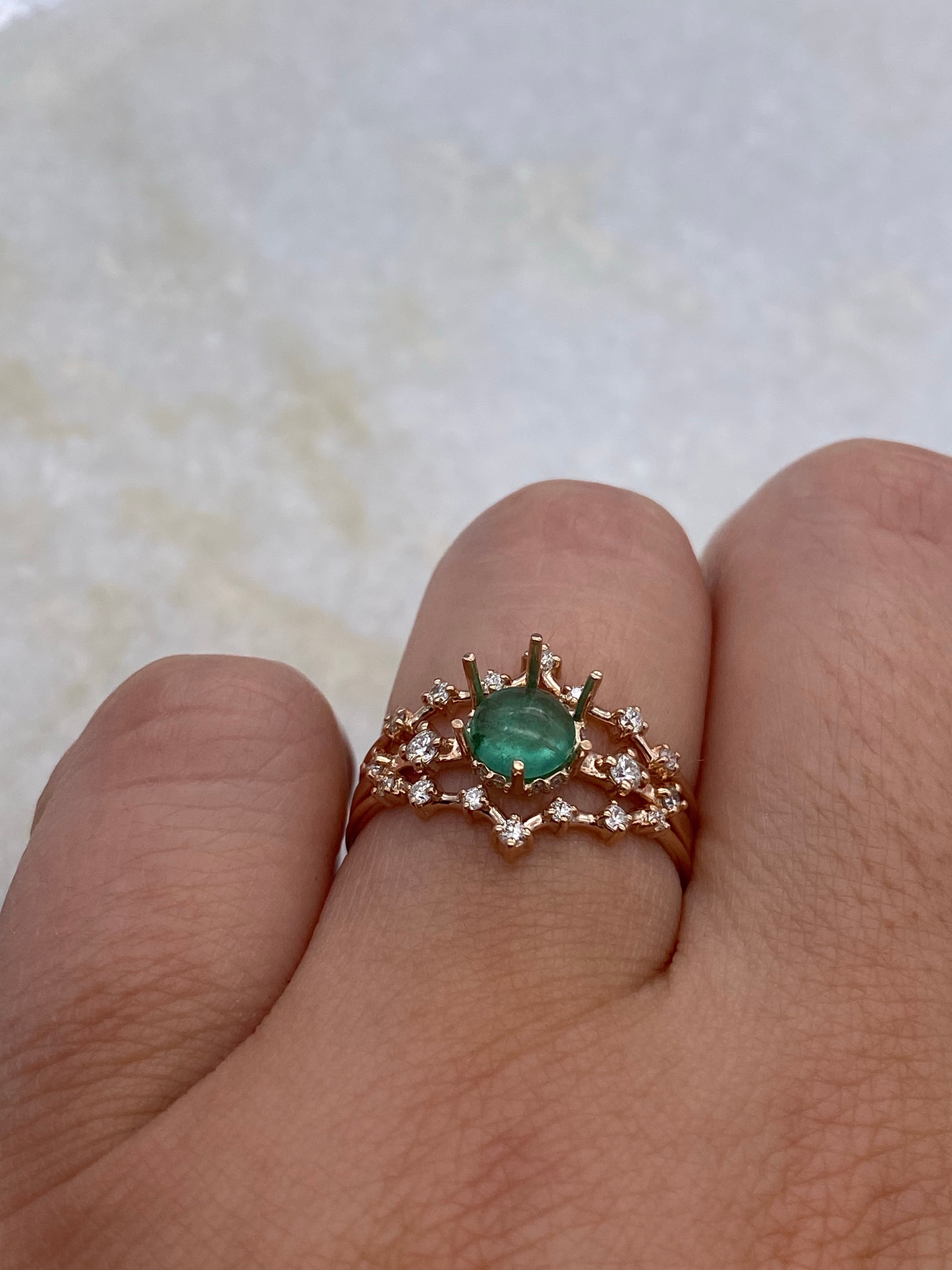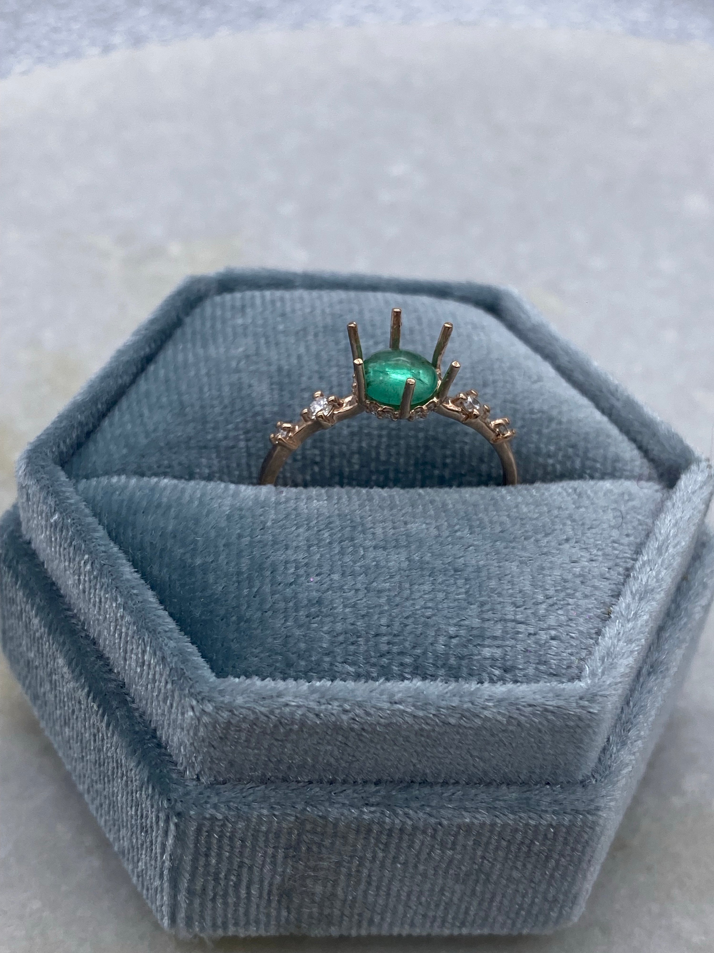 Emeralds have natural inclusions in them, and are softer than diamonds and sapphires. They are not always recommended for daily wear especially if you’re rough with your jewelry. (If so, I recommend a green sapphire) Please be careful while wearing this and don’t expose to high heat or chemicals. Store in your box to keep safe when not wearing.