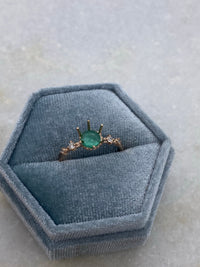 She holds a gorgeous .54ct natural colombian Emerald which has natural inclusions.